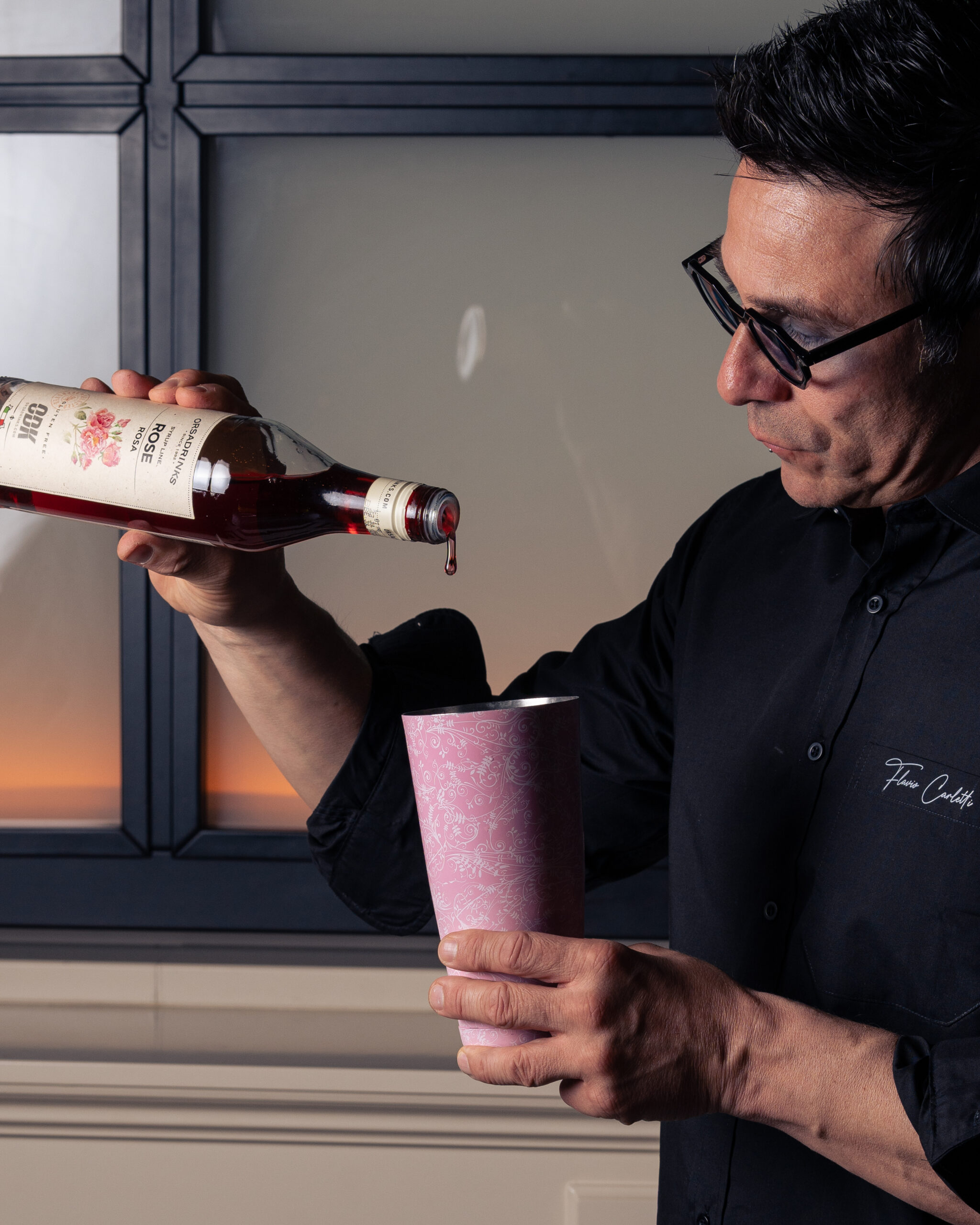 Edible garnish: Maltodextrins, 1 scoop ODK Hints of Vanilla Frappè, 5 ml ODK White Chocolate Syrup