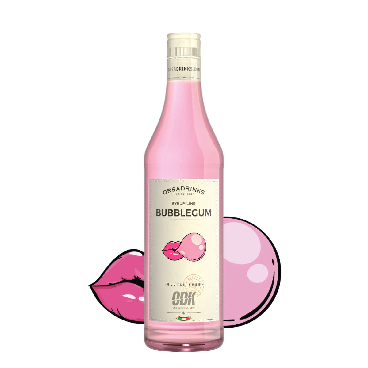 ODK Bubblegum Syrup is easily recognizable by its bright, eye-catching pink color and is charachterized by sweet and fruity notes: it can be a special addition to many creations, from cocktails to hot drinks or even ice creams.